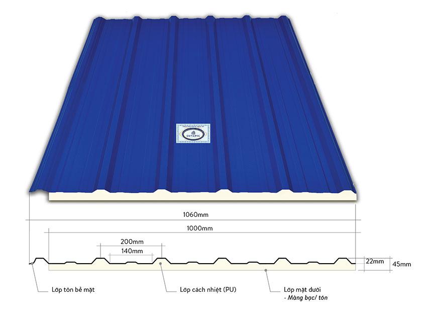 - Chiều cao sóng tôn: 22mm.