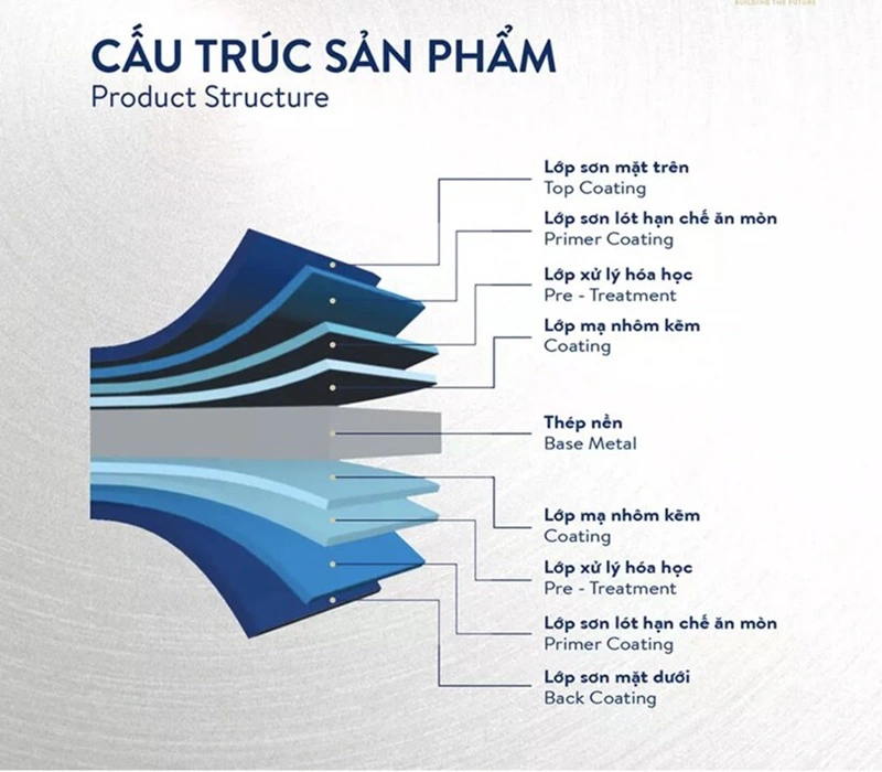 Cấu tạo nhiều lớp của tôn Vitek 4.5 zem cao cấp
