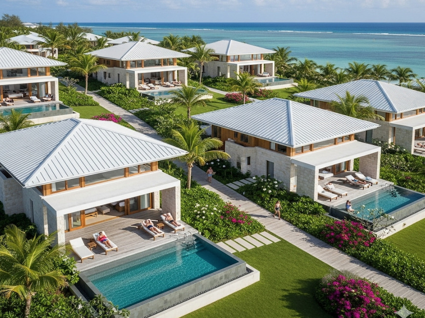 Tôn Vitek trắng sữa góp phần tạo nên không gian sang trọng cho các khu resort