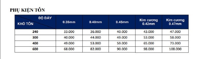 Bạn có thể tham khảo báo giá phụ kiện mái tôn Olympic trong bảng dưới đây:
