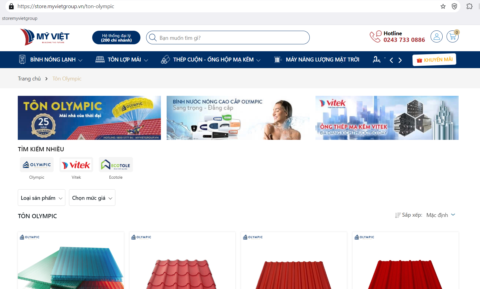 Ngoài ra, quý khách có thể dễ dàng đặt mua tôn Olympic ngay trên trang thương mại điện tử: store.myvietgroup.vn của chúng tôi. Tại đây, bạn sẽ tìm thấy đầy đủ thông tin về sản phẩm, giá cả, cùng nhiều chương trình khuyến mãi hấp dẫn. Chỉ với vài cú nhấp chuột, bạn có thể lựa chọn và đặt hàng một cách tiện lợi, nhanh chóng, giúp tiết kiệm thời gian và công sức.