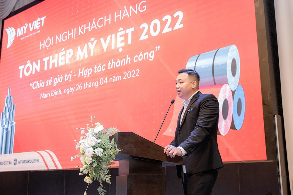 Tại hội nghị, bà Nguyễn Minh Thu - Phó Tổng giám đốc gửi lời tri ân tới các đối tác, khách hàng luôn sát cánh cùng sự phát triển của Mỹ Việt trong những năm qua; mong muốn tiếp tục chia sẻ những cơ hội, cùng nhau xây dựng mối quan hệ hợp tác hiệu quả để cùng tiến xa hơn. Bên cạnh đó, để đạt được mục tiêu này, Mỹ Việt cũng không ngừng thay đổi và cải tiến về công nghệ nhằm đem đến cho người dùng những sản phẩm chất lượng, đạt tiêu chuẩn châu Âu; hướng đến dẫn đầu xu hướng trong lĩnh vực tôn thép và vật liệu xây dựng tại Việt Nam.