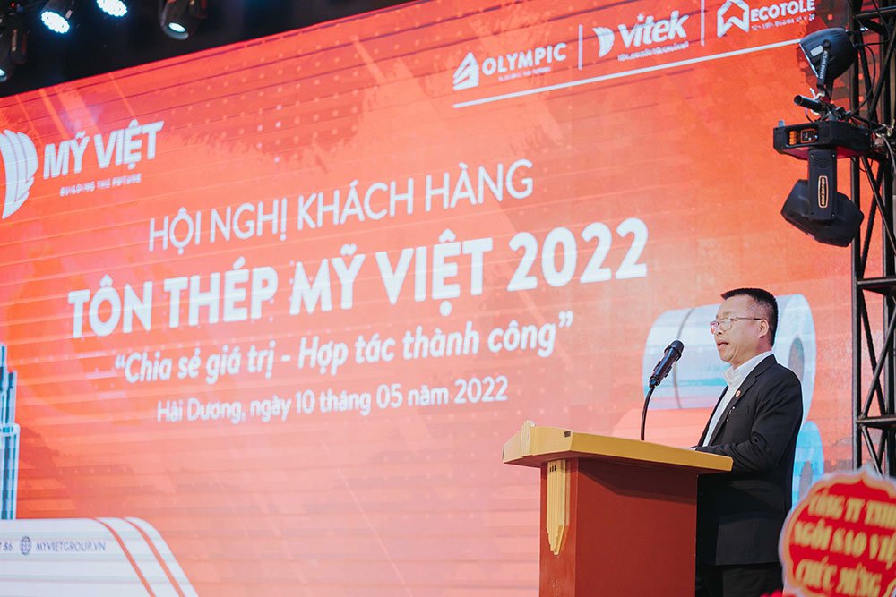Ông Trần Văn Kiên - Giám đốc kinh doanh Mỹ Việt đã chia sẻ những định hướng kinh doanh năm 2022 và cam kết những chính sách hỗ trợ tốt nhất mà Mỹ Việt cung cấp cho các nhà phân phối, đại lý. Ông Trần Văn Kiên nhấn mạnh, Mỹ Việt luôn mang đến cho đại lý, đối tác sự hỗ trợ toàn diện từ sản xuất, chất lượng cũng như đẩy mạnh hoạt động truyền thông, quảng bá hình ảnh, các chương trình khuyến mãi ưu đãi dành cho đối tác và người tiêu dùng... Những điều này sẽ tạo nên dấu ấn riêng của nhà phân phối, đại lý trên thị trường với sản phẩm tôn thép Olympic.