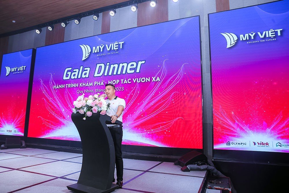 Trong khuôn khổ của chương trình, khách hàng tham dự đêm Gala Dinner với chủ đề “Hành trình Khám phá – Hợp tác vươn xa” là dịp thắt chặt hơn nữa mối quan hệ giữa Mỹ Việt và các NPP, Đại lý. Đồng thời có những chia sẻ thẳng thắn nhằm tìm ra những định hướng xây dựng và phát triển hơn nữa thương hiệu tôn thép Olympic cũng như cùng nhau đưa ra các giải pháp hoàn thành hoạch sản lượng năm 2023.