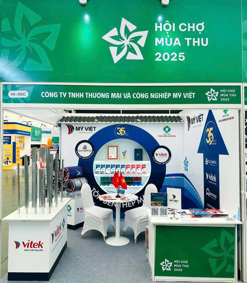 Tại Trung tâm Triển lãm Việt Nam (xã Đông Anh, Hà Nội), Hội chợ Mùa Thu 2025 đã khép lại trong không khí sôi động thu hút hàng trăm doanh nghiệp trong và ngoài nước tham gia. Giữa không gian trưng bày đầy sắc màu và sáng tạo, Công ty TNHH Thương mại và Công nghiệp Mỹ Việt đã ghi dấu ấn mạnh mẽ với thông điệp thương hiệu “Tôn bền – Thép mạnh”, khẳng định vị thế tiên phong trong ngành vật liệu xây dựng Việt Nam.