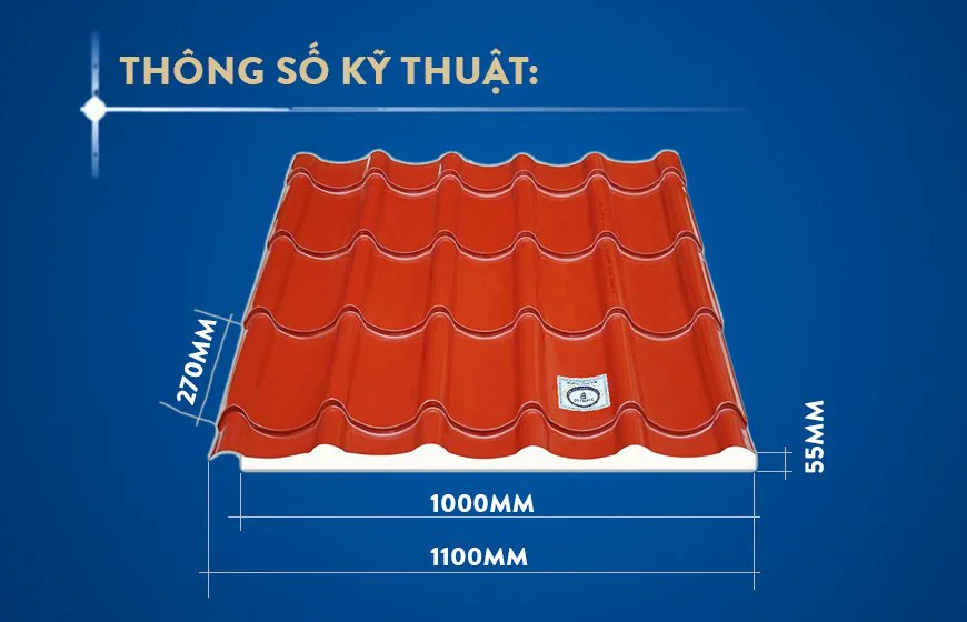 Thông số kỹ thuật chi tiết của tấm lợp mái 6 sóng