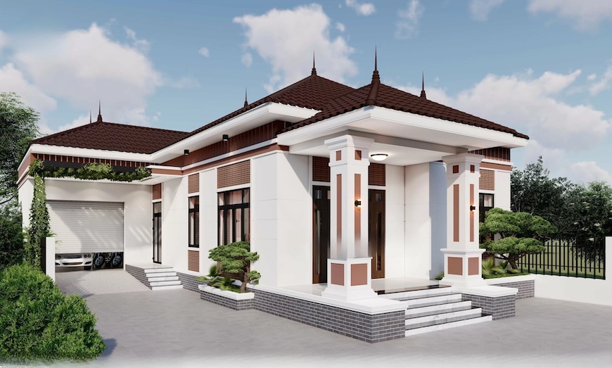 Mẫu nhà cấp 4 có 3 phòng ngủ mang đến một vẻ đẹp gần gũi với thiên nhiên