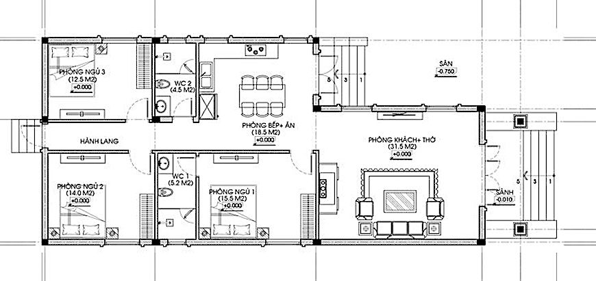 Mẫu nhà cấp 4 3 phòng ngủ tiện nghi, hiện đại
