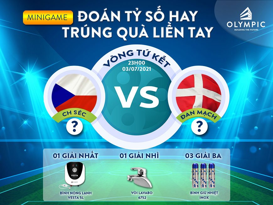 Không nằm ngoài sự cuồng nhiệt đó, Công ty Mỹ Việt chính thức mở chuỗi minigame với những phần quà vô cùng hấp dẫn dành cho những fan yêu bóng đá. Chương trình minigame đầu tiên sẽ là lượt dự đoán trận đấu CH Séc sẽ gặp Đan Mạch trong trận chiến nội bộ của những chú “ngựa ô” diễn ra vào 23h00 ngày 03/7/2021.