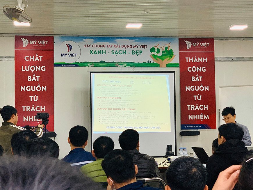 Buổi đào tạo an toàn lao động đã diễn ra trong niềm vui và sự hứng thú của cán bộ công nhân viên công ty Mỹ Việt. Nội dung, kiến thức được cô đọng qua những hình ảnh cụ thể và các đoạn phim thực tế giúp các cán bộ công nhân viên của công ty dễ dàng tiếp thu hơn.