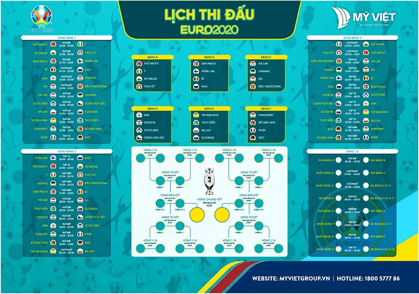 Công ty TNHH thương mại và công nghiệp Mỹ Việt gửi tới quý khách hàng lịch thi đấu để quý khách hàng không bỏ lỡ những trận cầu đỉnh cao của đội bóng ưa thích và đừng quên theo dõi kênh Fanpage của Mỹ Việt qua https://www.facebook.com/myvietgroup để tham gia các Mini game trong thời gian diễn ra Euro 2020 với nhiều phần quà hấp dẫn của chúng tôi nhé