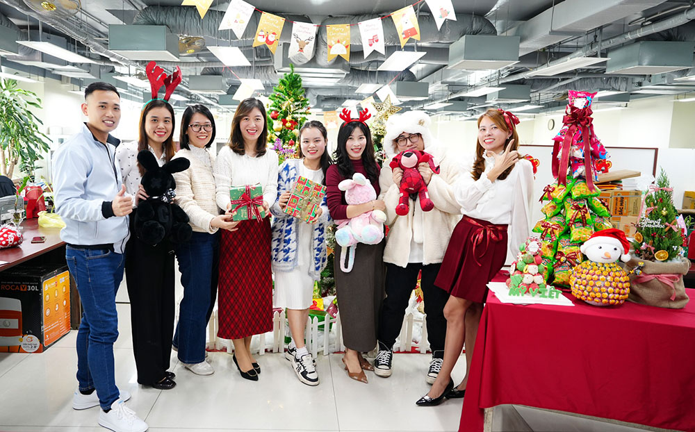 Đây là sự kiện đặc biệt nhằm tôn vinh những nỗ lực đóng góp của các thành viên trong suốt thời gian qua, đồng thời lan tỏa không khí lễ hội đến toàn bộ nhân viên. Không gian tiệc được trang trí lung linh, tràn ngập sắc màu Giáng sinh với cây thông xanh tươi, ánh đèn flash và những hộp quà trang nhã. Từ chi tiết đều được chuẩn bị kỹ lưỡng, tạo nên một bầu không khí ấm áp và thân tình.