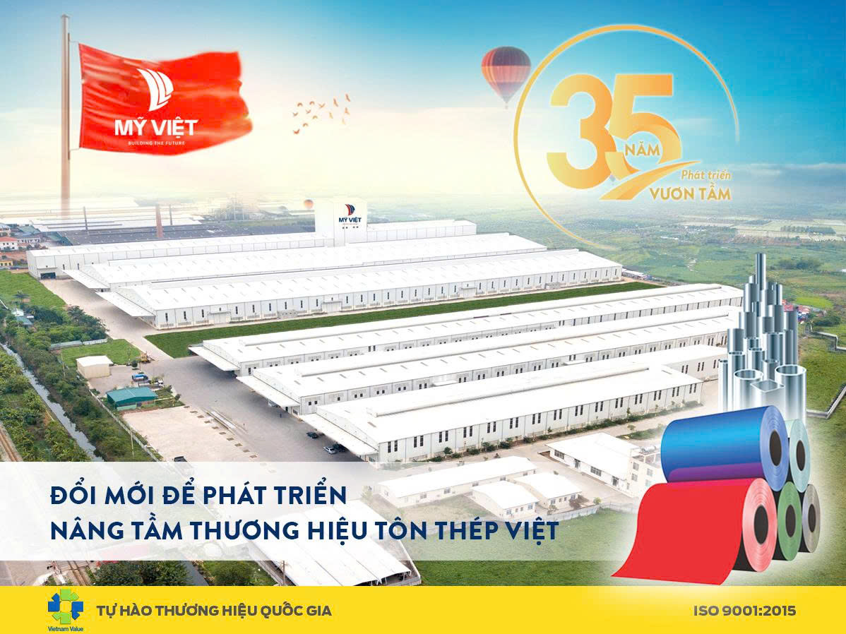 35 năm phát triển, Mỹ Việt không ngừng đổi mới để đưa các sản phẩm tôn thép đạt chuẩn Thương hiệu quốc gia.
