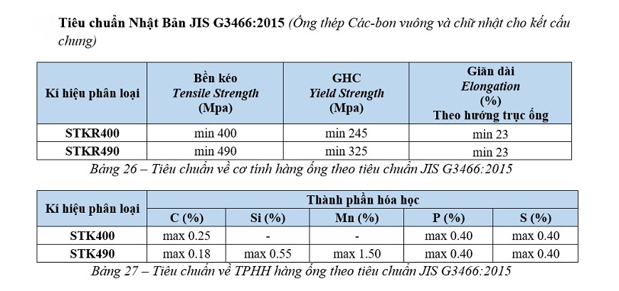 Tiêu chuẩn JIS G3466:2015 của dòng thép hộp mạ kẽm Vitek