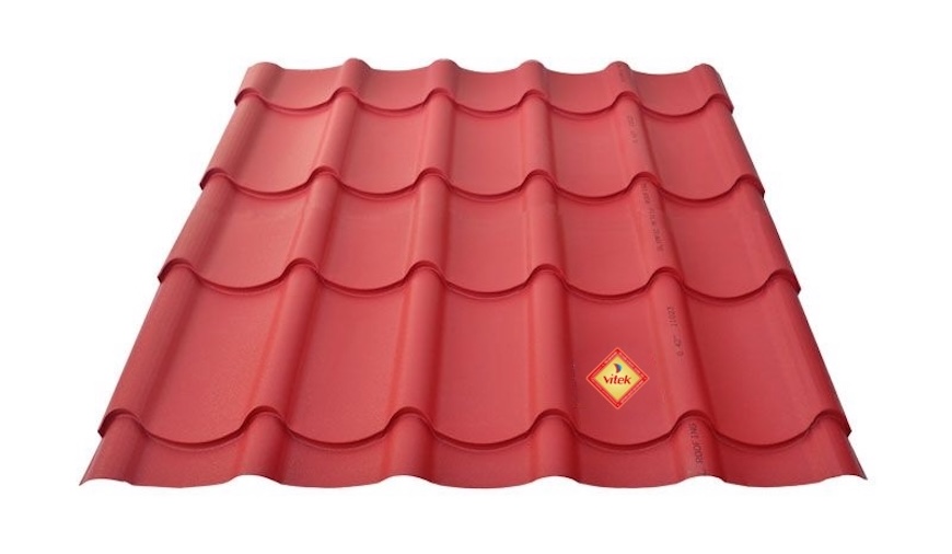 - Tôn sóng ngói: Đây là kiểu dáng được thiết kế mô phỏng hình dáng của mái ngói truyền thống, mang lại vẻ đẹp cổ kính, sang trọng và đậm chất Á Đông. Tôn sóng ngói Vitek đỏ đậm kim cương là sự kết hợp hoàn hảo giữa vẻ đẹp cổ điển và công nghệ hiện đại. Với trọng lượng nhẹ hơn ngói truyền thống rất nhiều, tôn sóng ngói giúp giảm tải trọng cho khung nhà, dễ dàng lắp đặt và tiết kiệm chi phí. Đồng thời, sản phẩm vẫn giữ được khả năng chống nóng, chống rỉ sét vượt trội.