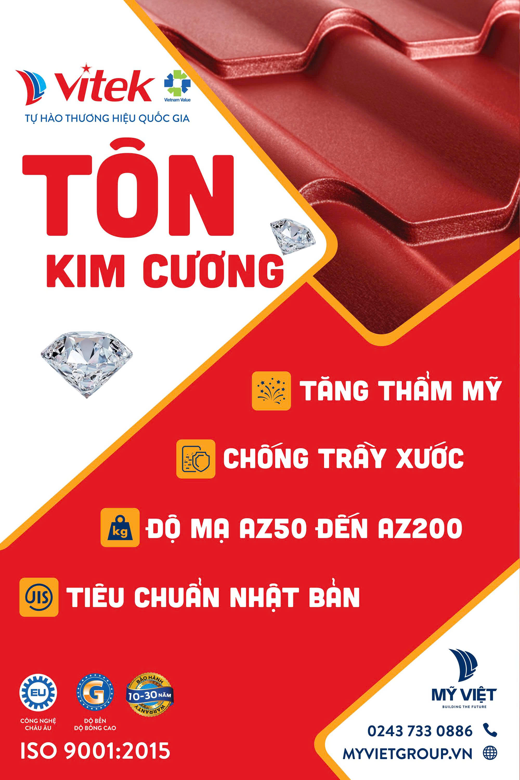 Để nhận báo giá tôn ghi xám kim cương Vitek mới nhất và tham khảo các chính sách ưu đãi đặc biệt, hãy liên hệ ngay với Mỹ Việt qua Tổng đài kinh doanh 0243 733 0886 (số máy lẻ 02) hoặc truy cập trang thương mại điện tử Tôn Vitek.