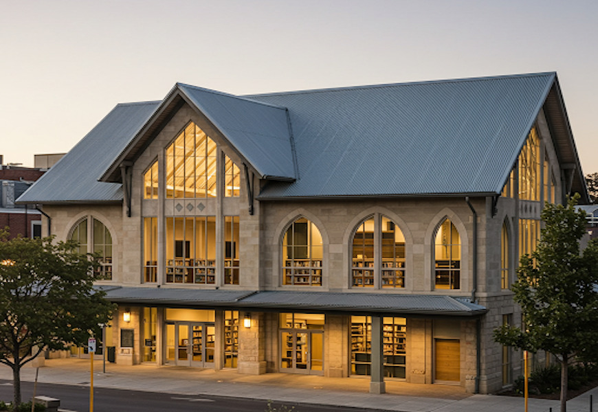 Tôn Vitek ghi xám sóng vuông tạo làm nổi bật lên vẻ đẹp hiện đại của thư viện