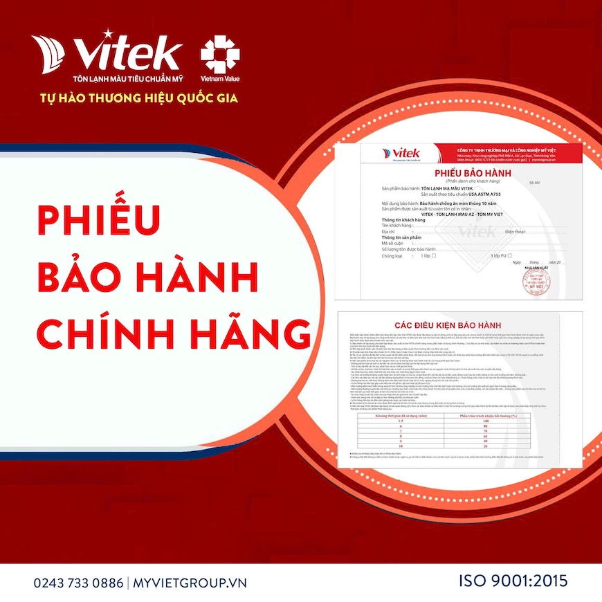 Sản phẩm Tôn Vitek luôn có phiếu bảo hành đi kèm khi mua sản phẩm