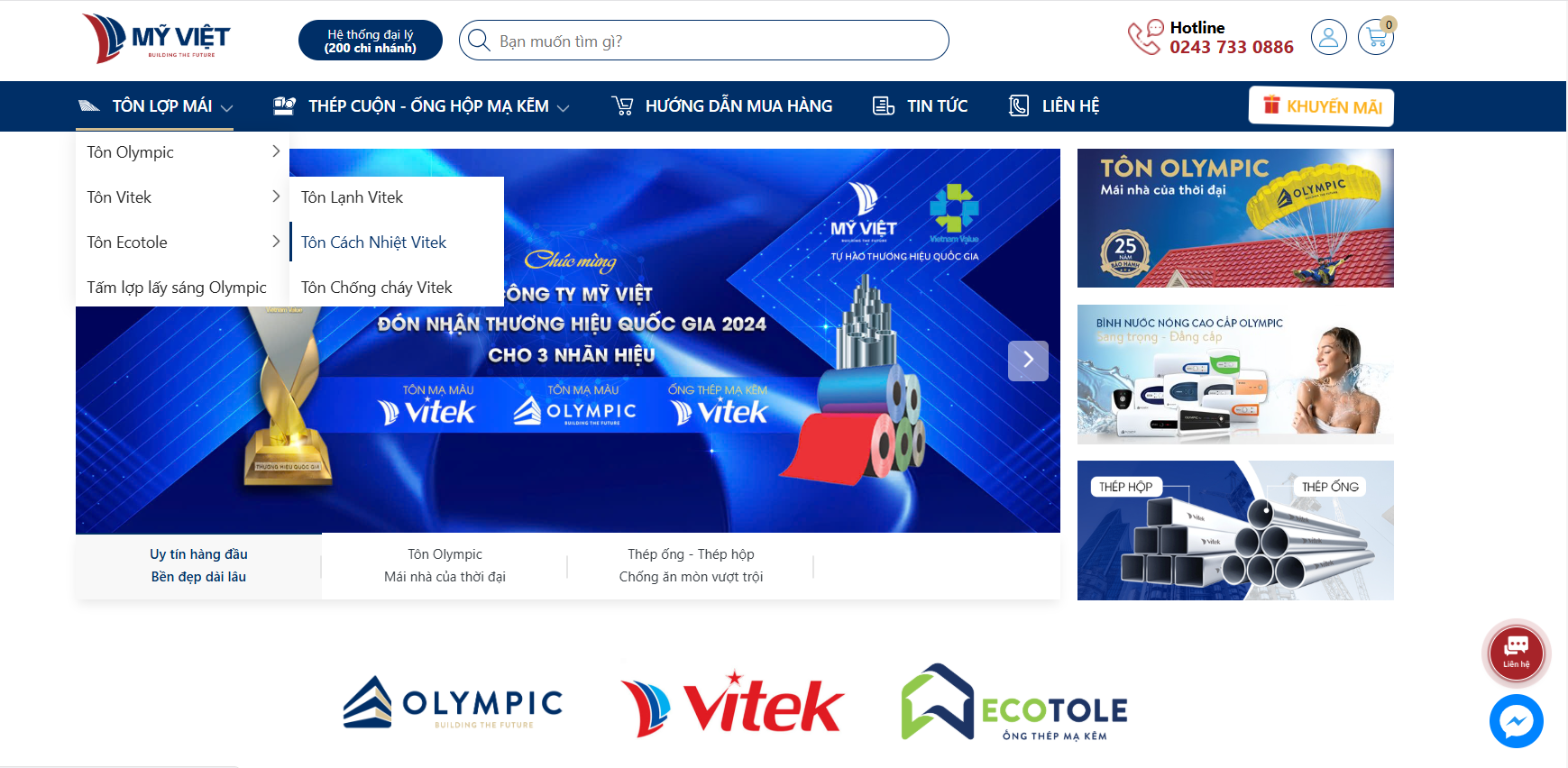 Nếu bạn không tiện đến tận nơi, mua tôn Vitek online là giải pháp nhanh chóng và minh bạch. Mỹ Việt Group đã tích hợp hệ thống tra cứu và đặt hàng trực tuyến trên website thương mại điện tử chính thức của hãng. Quy trình mua hàng đơn giản như sau: