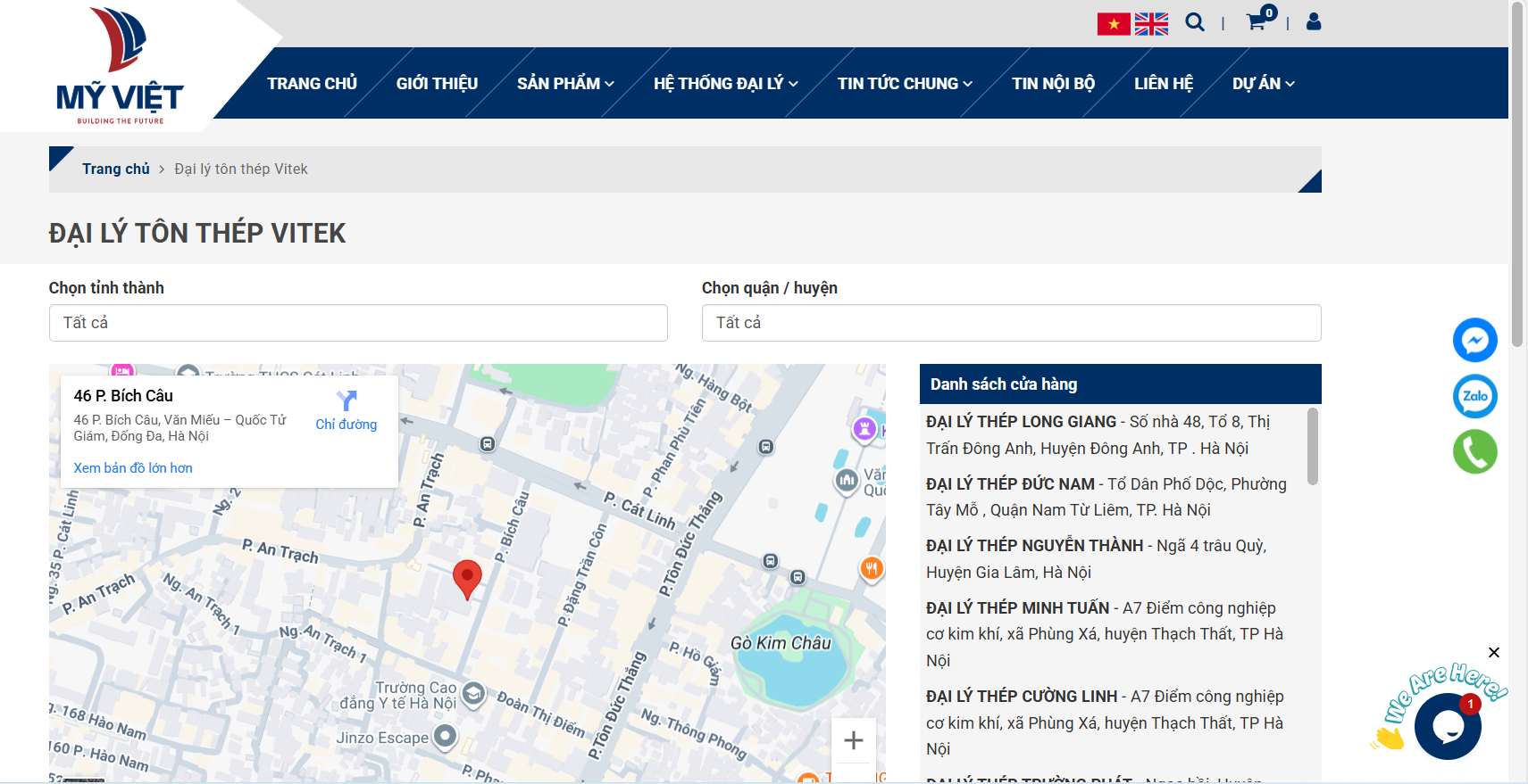 - Chọn mục “Hệ thống đại lý” → “Đại lý tôn thép Vitek”.